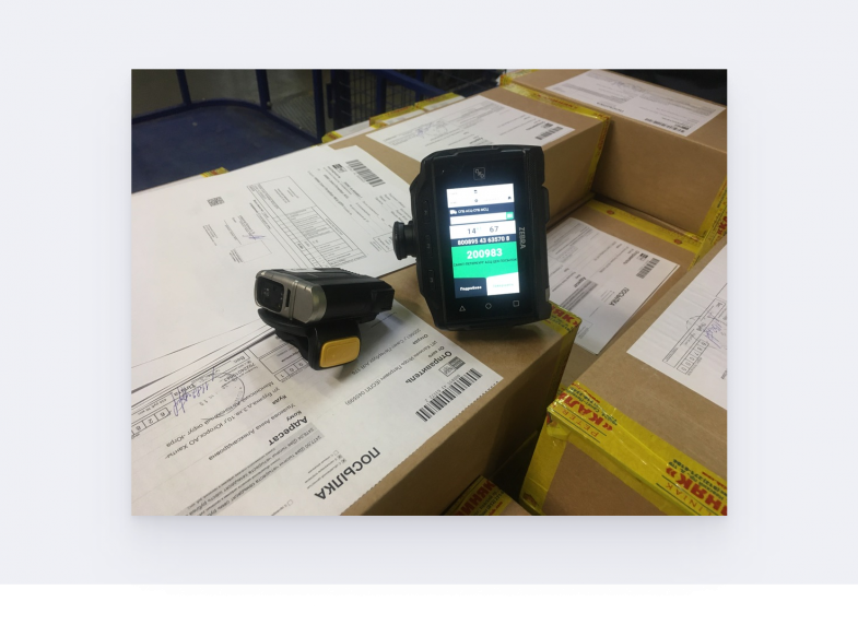 Mobile terminals are used in automated sorting centers. The terminal runs on the Android system, is equipped with a barcode scanner and is fastened to the operator’s arm with a cuff.