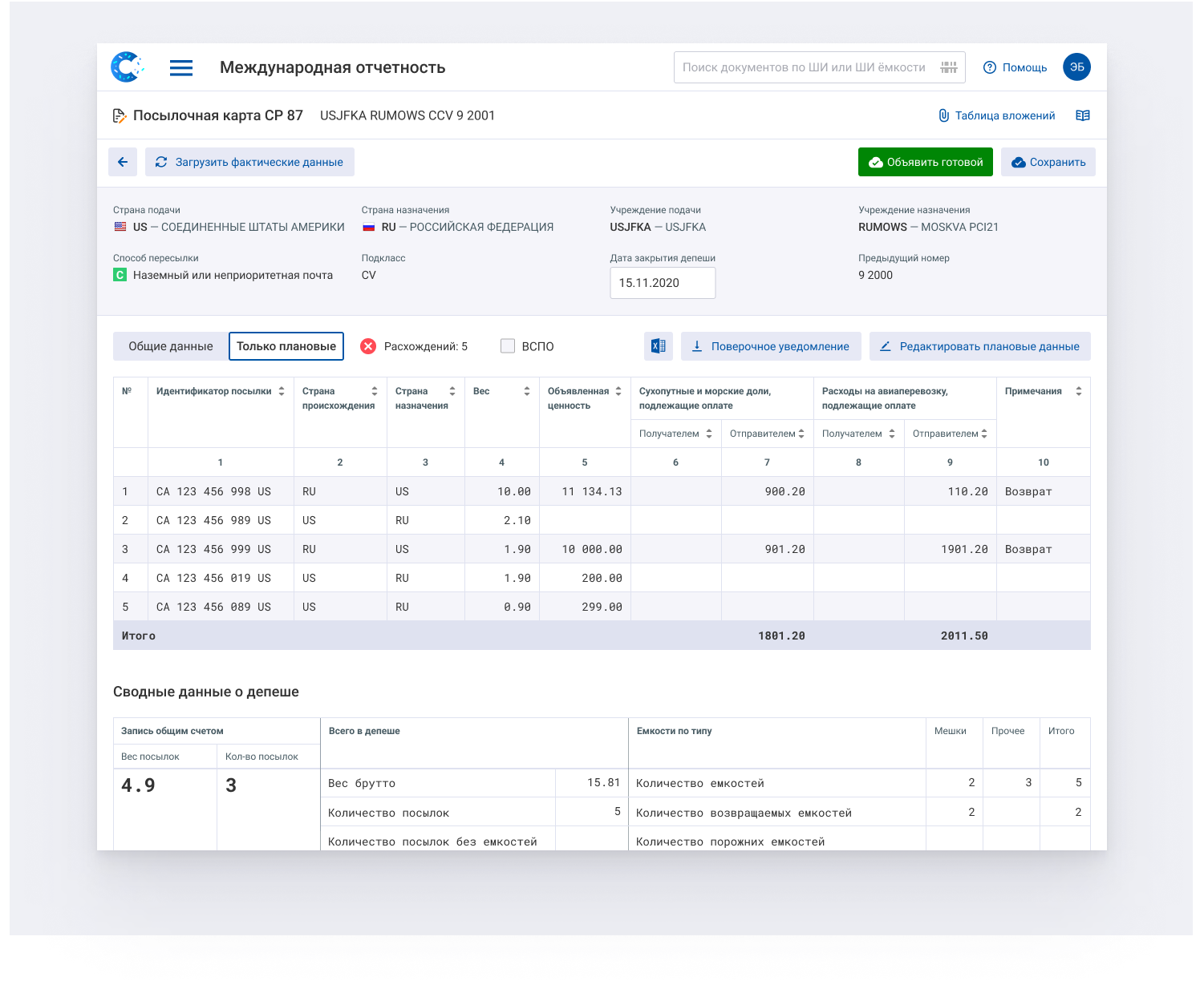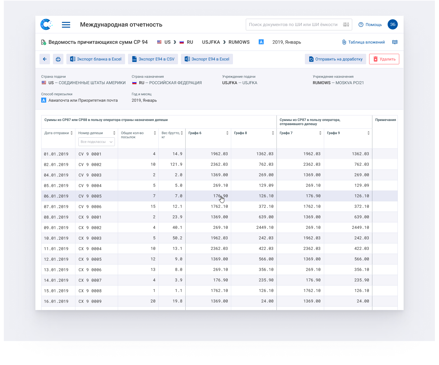 In order to build a convenient accounting system, it became necessary to fully immerse the team in the process. The design team conducted a series of in-depth interviews with international exchange operators at major hubs in different cities and with treasury employees. The team of analysts, together with the BigData department, did a comprehensive study of the structure of international mail flows. A comprehensive approach with a focus on user experience has allowed us to reimplement the accounting system for international exchanges. NDA